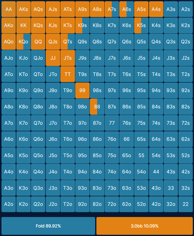 1 - The Raise First In (RFI) Ranges show which hands to play in each position when all other players have folded to you.