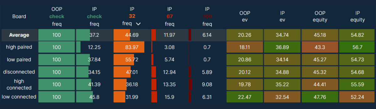 IP strategy on different board textures, sorted by bet frequency