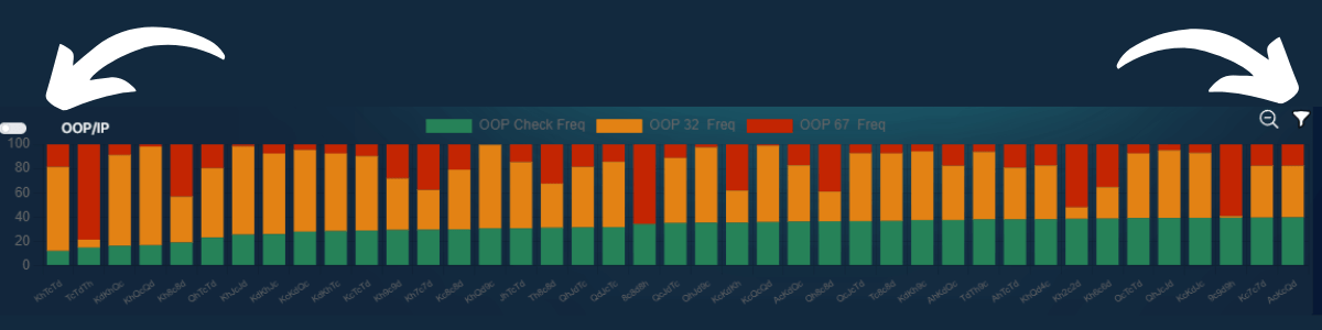Click the IP/OOP toggle to switch display between OOP flop decision or IP flop decision after OOP check.