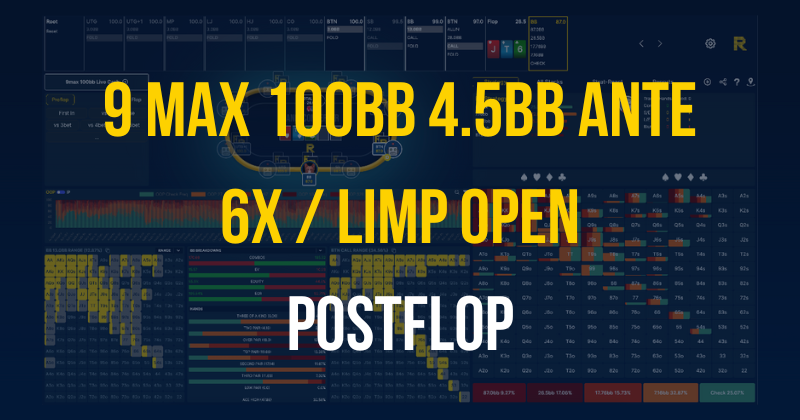 We’re excited to announce a new set of postflop data for Live Cash NLHE 9-max SB Ante 100bb. We’ve run the postflop using limp or raise first in preflop strategies.