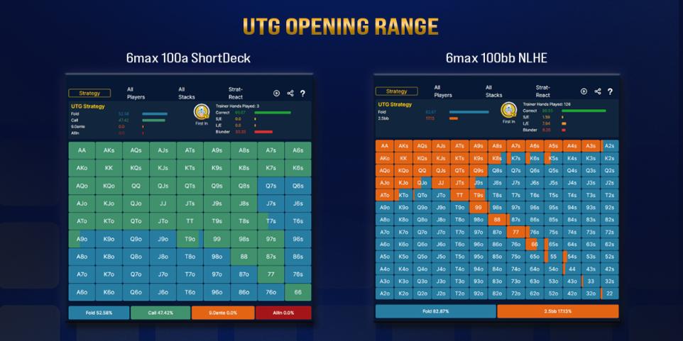 That said, it’s worth noting that many concepts from NLHE are still valid in Short Deck poker strategy, for example, playing loose on the button and defending the double ante with a wide range, and 3-betting with a well-structured range. Although there will be differences in specific ranges, a solid understanding of NLHE strategy is a great asset.