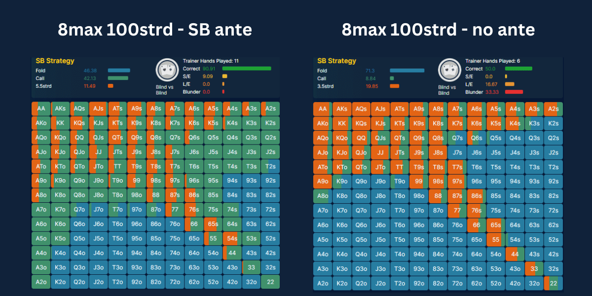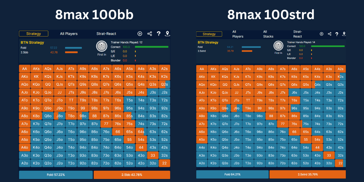 Postflop and macro strategy reports are also available in Range Pro Cash subscription for 8max 100 Straddle SB Ante and 8max 100 Straddle no ante.